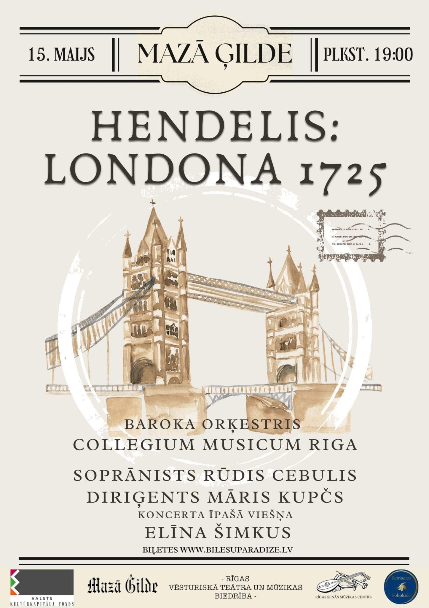 Koncertā “Hendelis: Londona 1725” baroka orķestris Collegium Musicum Riga kopā ar diriģentu un klavesīnistu Māri Kupču klausītājus aizveda uz 18. gadsimta Londonu – laiku, kad Georgs Frīdrihs Hendelis radīja savus spilgtākos darbus. Programmā skanēja gan uvertīras un concerto grosso, gan slavenā svīta “Ūdens mūzika”, kā arī virtuozas un emocionāli piesātinātas ārijas soprānista balsij.